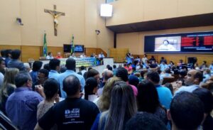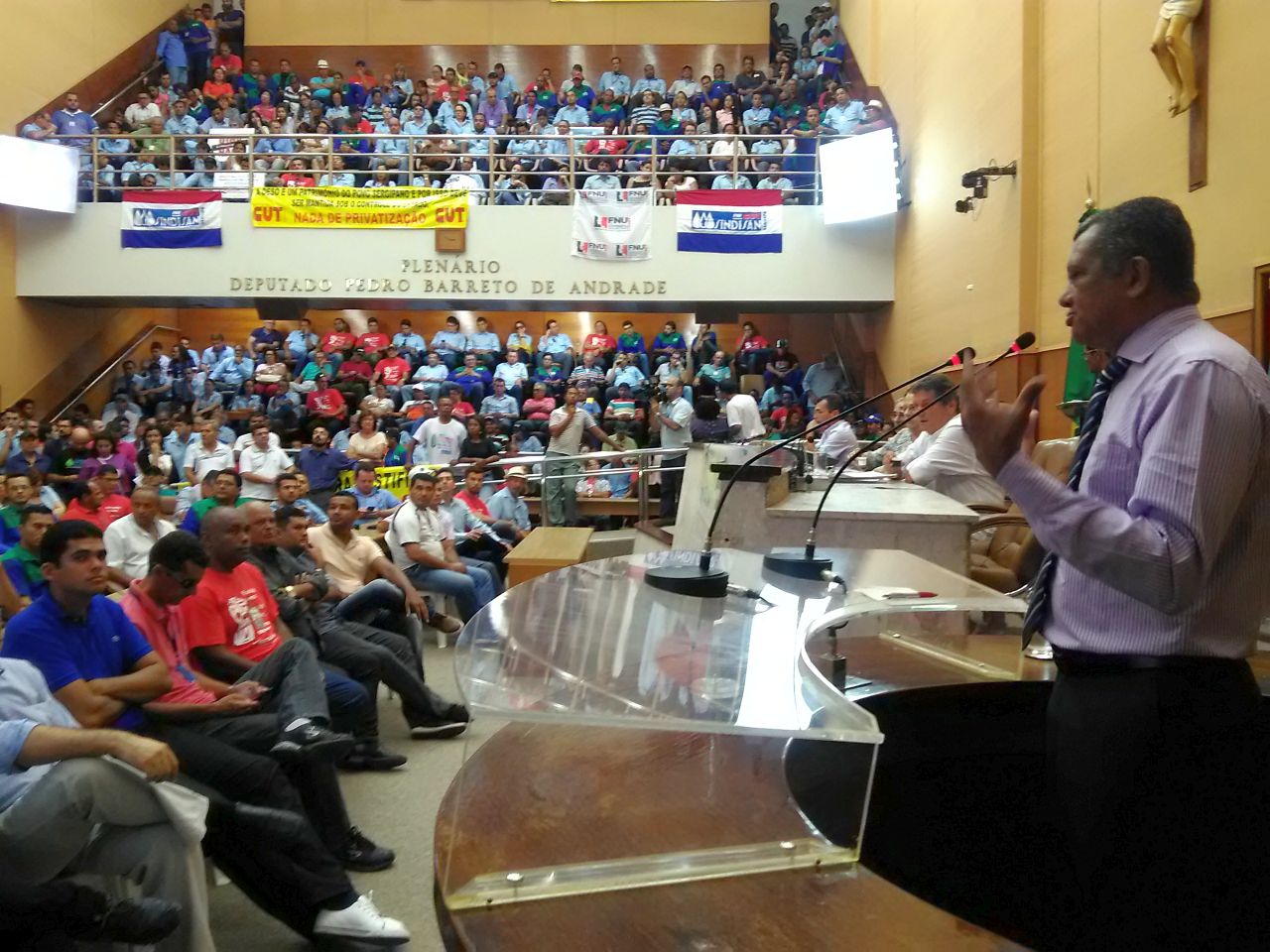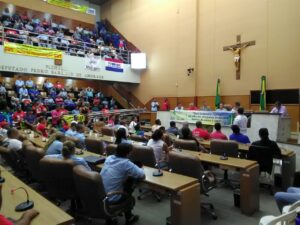 A tarde da quinta-feira, 16 de fevereiro, vai entrar para a história das lutas dos trabalhadores de Sergipe. Cerca de mil servidores da Deso – vindos da Capital e do Interior, mobilizados pelo SINDISAN – e de sindicalistas, representantes de movimentos sociais e populares lotaram o plenário e as galerias da Assembleia Legislativa do Estado, todos com uma só bandeira: a defesa da Deso como empresa pública. Muitos ainda ficaram na praça em frente à Alese, acompanhando a audiência que era retransmitida em um carro de som.